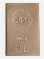 First National Bank, Tahlequah Oklahoma, 999 silver ingot bar 2.83 troy oz, made using vintage marking device, DC-292